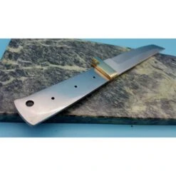 Longueur totale 31.12cm. Longueur de lame 18.42cm. Epaisseur de lame 3.17mm. Lame en acier inox. Lame de type tanto finition satin. Garde en laiton. Construction d’une seule pièce.
