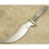 Lame seule Ă customiser le manche. Longueur totale 20,95cm – Longueur de la lame 16,51cm – Lame en acier damas 256 couches – Dos de la lame guillochĂ© – Lame lisse – Garde en laiton – Etui cuir marron.