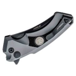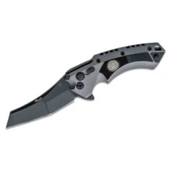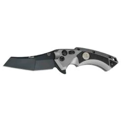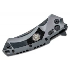 Couteau Sig X5 Tactical Emperor Scorpion CPM-154 Wharncliffe Blade Gray Aluminum Handles Button Lock Clip Made USA pliant – Longueur ouvert 20.64cm – Longueur fermĂ© 11.74cm – Longueur de lame 8.89cm – Epaisseur de lame 3.81mm – Lame en acier 154CM – DuretĂ© 57-59HRC – Lame de type Wharncliffe plain edge finition Black Cerakote – Affutage High Flat – Plaquettes du manche en Aluminium 6061-T6 avec insert G10 – Trou dans le manche pour dragonne – Ouverture d’une main avec le flipper – Système de sĂ©curitĂ© boutton lock – Clip de poche
