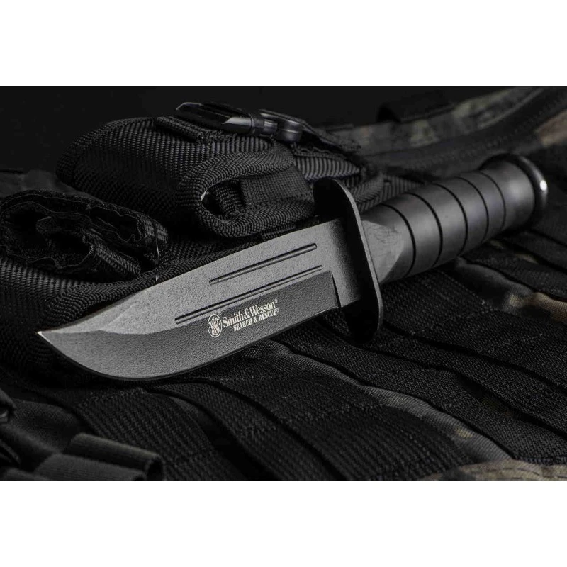 Couteau Smith&Wesson Search & Rescue Lame Acier 7Cr17MoV Manche Caoutchouc Etui Nylon+Pierre SWSUR2CP – Livraison Gratuite