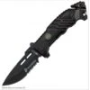 Couteau de Survie Tactical Spartan Blades Damysus 1095 Carbon Blade Micarta Handle Molded Sheath USA à lame fixe – Longueur totale 27.30cm – Longueur de lame 13.97cm – Epaisseur de lame 4.76mm – Lame en acier carbone 1095 – Dureté 56 58HRC – Lame de type drop point plain edge finition black – Construction d’une seule pièce – Full tang – Plaquettes du manche en micarta – Etui molded sheath – Made In USA