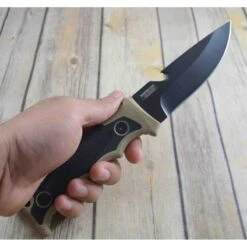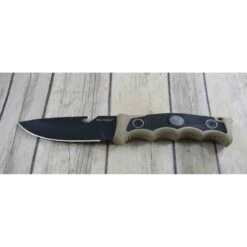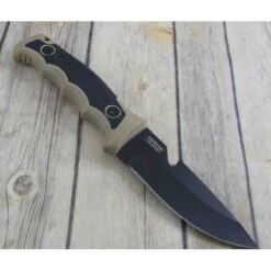Couteau de Survie Combat Tac Force Tactical Tan Handle 3Cr13 Blade Nylon Sheath Camo Paracord Bracelet Ă lame fixe – Longueur totale 24.76cm – Longueur de lame 12.06cm – Epaisseur de lame 4.82mm – Lame de type drop point plain edge finition black – Fonction crochet – Lame en acier 3Cr13 – Manche en FRN et caoutchouc – Trou dans le manche pour dragonne – Etui nylon – Bracelet paracorde avec lameÂ