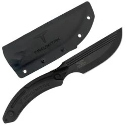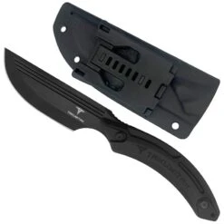 Couteau Tactical Takumitak HUNTER Straight Back Black D2 Blade G10 Handle Kydex Sheath Ă lame fixe – Longueur totale 24.13cm – Longueur de lame 11.43cm – Epaisseur de lame 4.71mm – 4.93mm – Lame de type Straight Back plain edge finition black – Affutage flat – Lame en acier D2 – DuretĂ© 61-62HRC – Construction d’une seule pièce – Full Tang – Plaquettes du manche en black G10 – Trou dans le manche pour dragonne – Etui Kydex