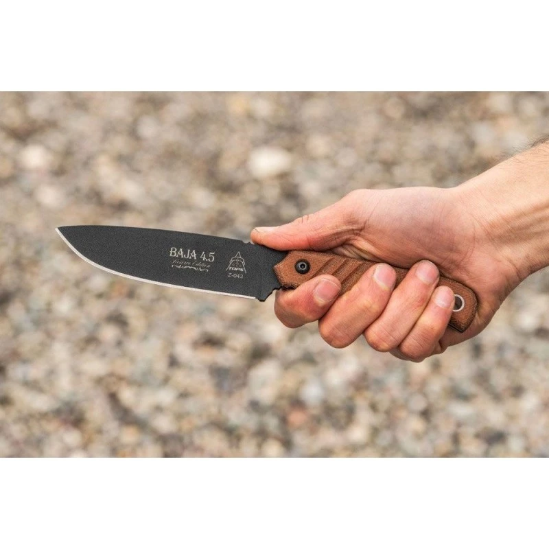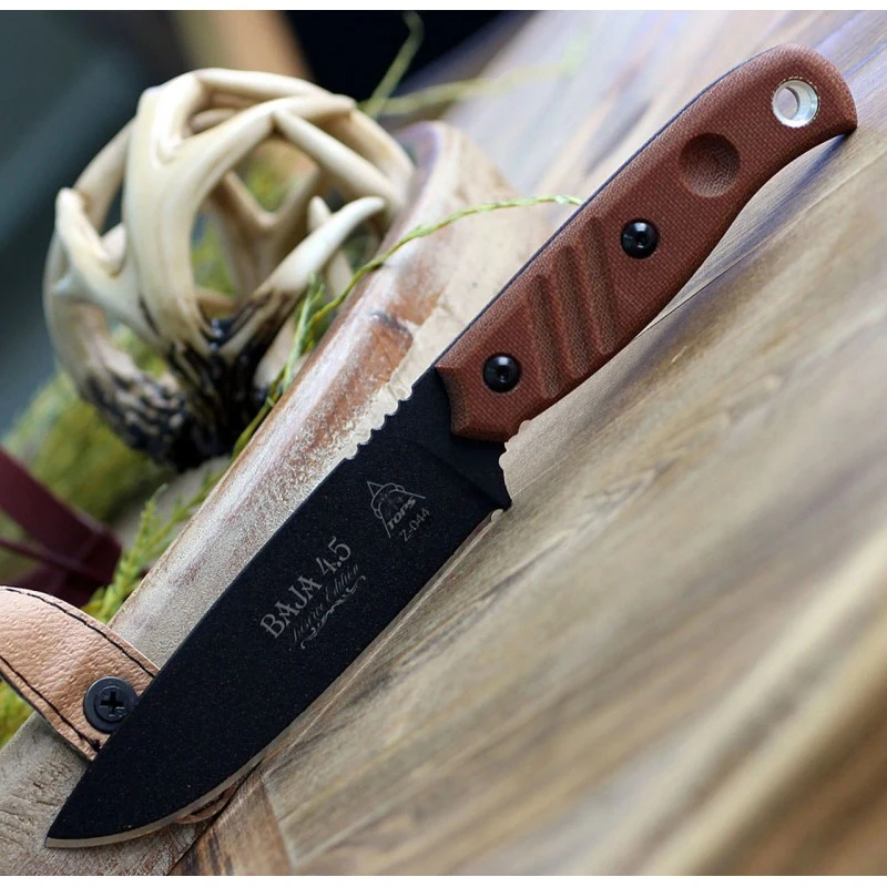 Couteau TOPS Baja 4.5 Reserve Edition Acier Carbone 1095 Manche Micarta Etui Cuir Made USA TPBAJA45R – Livraison Gratuite