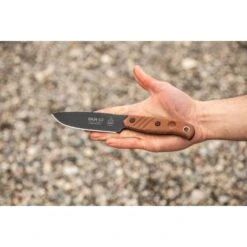 Unlike TOPS’ other models in the 4 to 4.5-inch range, this one is 5/32″ thick. That thickness along with a full flat grind gives it strength over 1/8″ blades but allows it to maintain superb cutting capabilities since it’s slightly thinner than 3/16″. Their professional heat treat gives a long-lasting edge that is easy to re-sharpen once it is eventually needed. The jimping on the spine and along the finger guard is ideal for a solid grip in hard use or slippery conditions. Due to the thinner blade, it gives you better precision and greater range from making delicate cuts to cutting thick branches with ease.