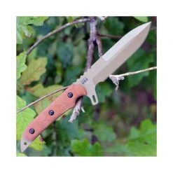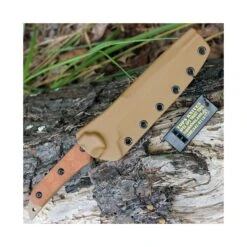 Couteau Tops Missile Strike 1095 Blade Tan Canvas Micarta Handle Coyote Tan Kydex Made USA Ă lame fixe – Longueur totale 28.80cm – Longueur de lame 15.24cm – Lame en acier carbone 1095 – DuretĂ© 56-58HRC – Epaisseur de lame 6.35mm – Lame de type spear point plain edge finition Coyote Tan – Construction d’une seule pièce – Full tang – Garde intĂ©grĂ©e dans la lame – Plaquettes du manche Tan Canvas Micarta – Trou dans le manche pour dragonne – Etui kydex Coyote Tan – Made In USA – Designer: Kelly McCulley