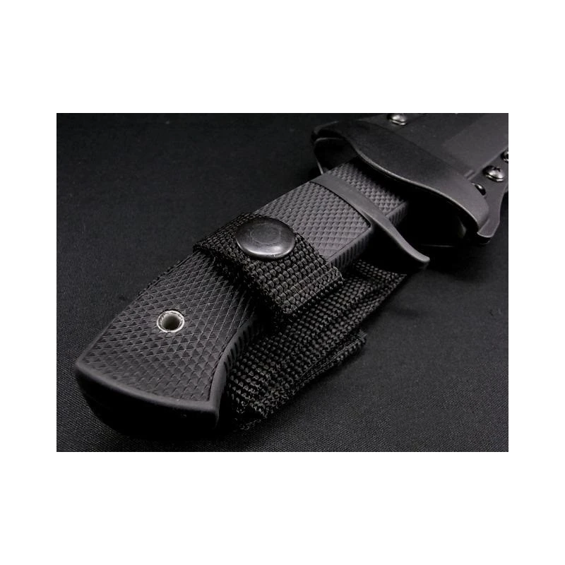 33.99cm overall. 20.96cm satin finish AUS-8A stainless blade. Black Kray-Ex handle. Lanyard hole. Integrated guard and subhilt. Black Secure-Ex belt sheath. Boxed.