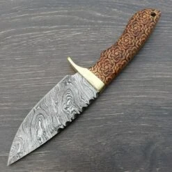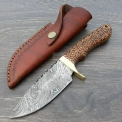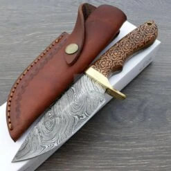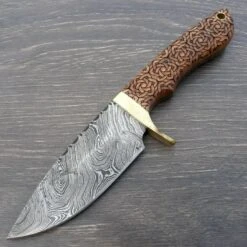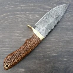 DM1208 Couteau Damas Celtic Knot Hunter Damas 256 Couches Manche Bois Etui Cuir – Livraison Gratuite
