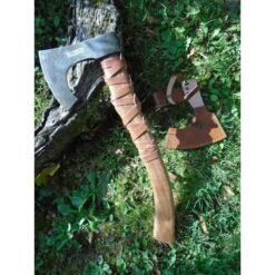 Hache Hachette du Chef Viking Harald Hardrada Roi de Norvège Marque Marbles – Longueur totale 45cm – Longueur de la lame 12.50cm – Longueur de la tĂŞte 15.5cm – Lame en acier carbone 1055 – Fonction marteau – Manche en bois avec lanière – Etui cuir – IdĂ©al pour la survie & le buscraft ou accrochĂ©e sur une poutre de cheminĂ©e !!!