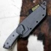 This Marbles Chopper features an orange coated stainless steel head and a smooth wood handle with a paracord lanyard attached. This versatile tool can be used as a knife, hatchet, shovel, saw, or a pry bar. It also has hex and wrench cutouts in the blade. It includes a nylon sheath and a sharpening stone.