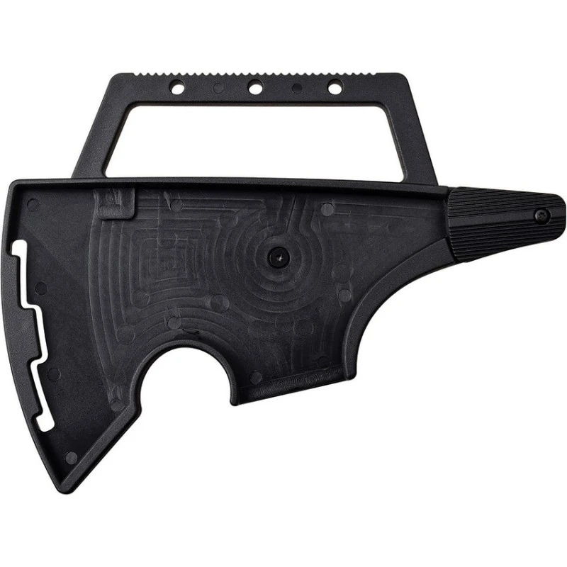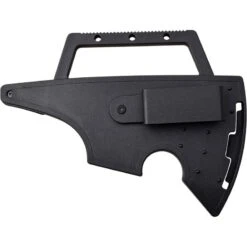 38.10cm overall. 19.05cm black finish stainless axe head with 10.79cm cutting edge. Black plastic handle. Full, extended tang. Pry bar end. Black molded plastic clip sheath. Boxed.