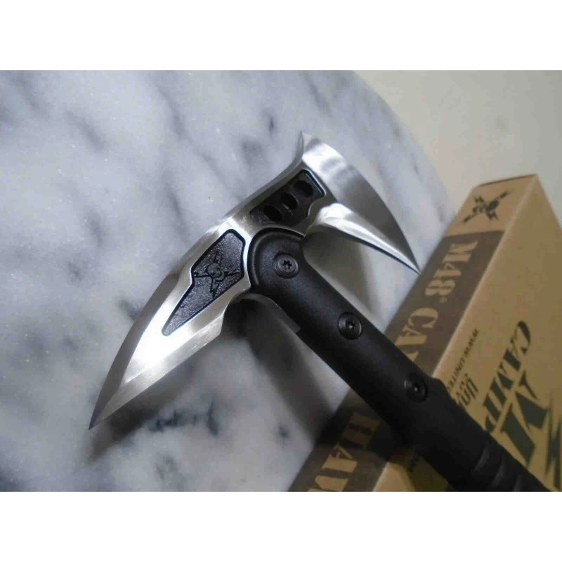 Now you can enjoy all the qualities of United Cutlery’s best-selling M48 Tactical Tomahawk in this slightly scaled down M48 Camp Hawk. The 13.97cm head is precision cast of cast stainless steel with a polished finish and attached to the 30% fiberglass and nylon reinforced handle with sturdy metal bolts. The 7.62cm blade is ideal for all of your lighter duty chopping, slashing and breaching applications.