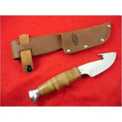 Kabar Game Hook Hunter – 7 1/4′ overall.3 1/4″ stainless guthook blade.Polished leather handle with brass ferule and aluminum pommel. Brown leather belt sheath.Weight: 0.6lbs Country of Origin: Taiwan
