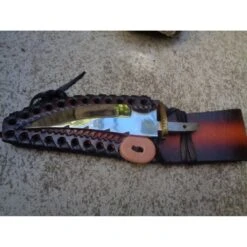 BL7723 Knifemaking Clip Blade Guard/Sheath Brass guard Brown leather belt sheath.