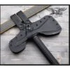 Couteau Poignard Façon Médiéval à lame fixe – Longueur totale 35.56cm – Longueur de la lame 20.32cm – Lame en acier inox – Lame de type clip point plain edge finition satin . Garde et pommeau en laiton – Manche en bois avec clous – Etui en cuir