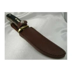 SCH160OT Schrade Old Timer Mountain Lion – 9 3/8″ overall. 5″ stainless upswept blade. Full tang. Brown sawcut Delrin handles with brass finger guard. Brown leather belt sheath.